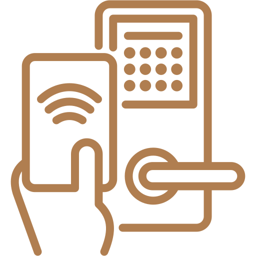 Enjoy peace of mind with a modern security setup featuring smart locks and strategically placed surveillance cameras.